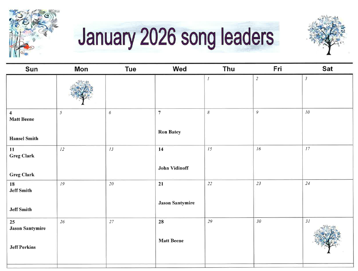 Song Leaders Schedule